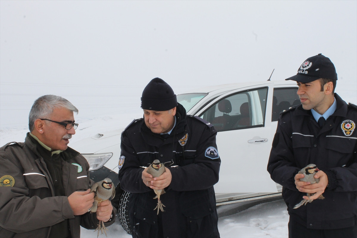El konulan kınalı keklikler, Doğa Koruma ve Milli Parklar Iğdır Şube Müdürlüğü Av ve Yaban Hayatı Koruma görevlilerine teslim edildi.