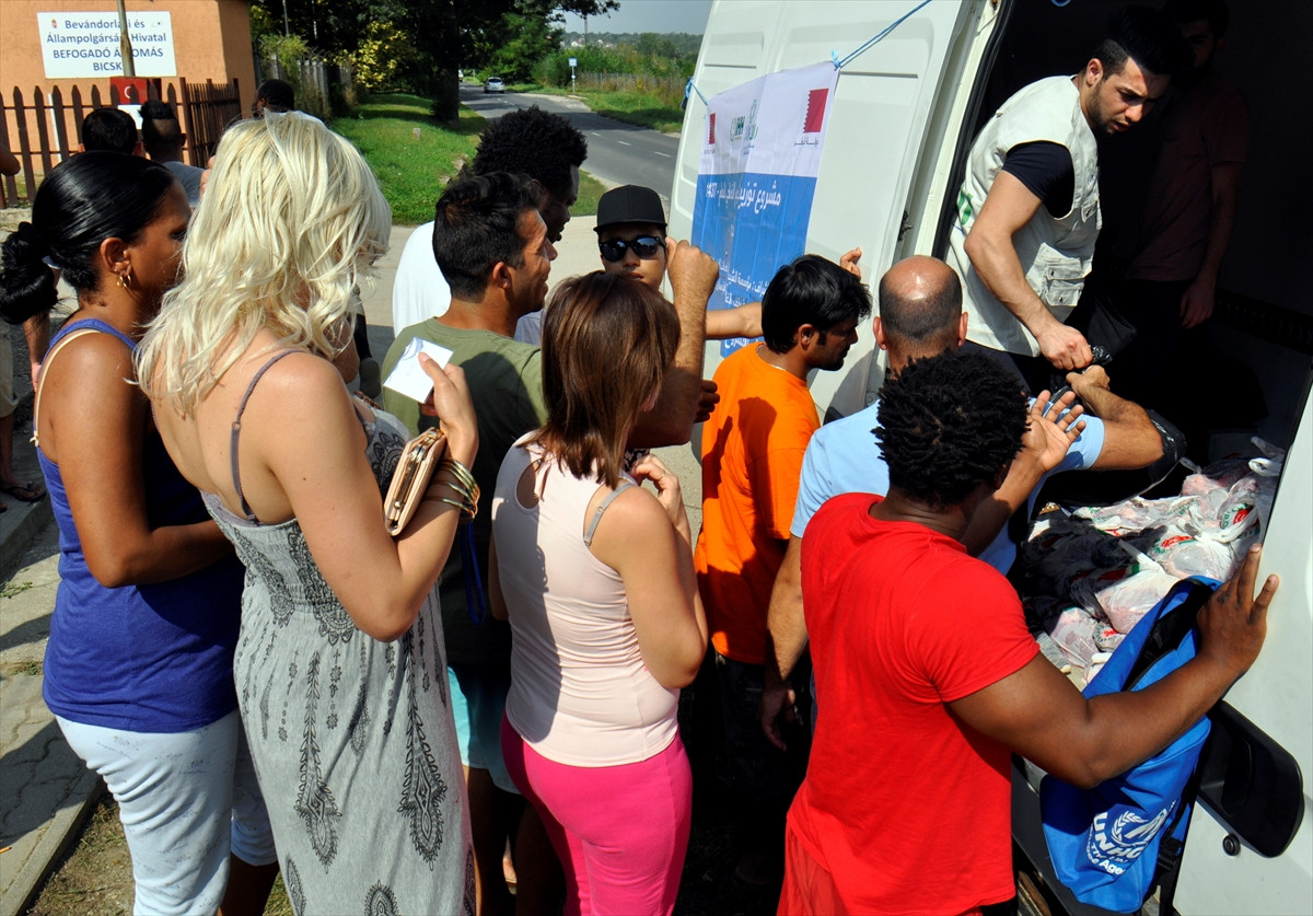 Macaristan'ın Bicske kentinde bulunan sığınmacı kampı önünde, sığınmacılara et dağıtımı gerçekleştirildi.