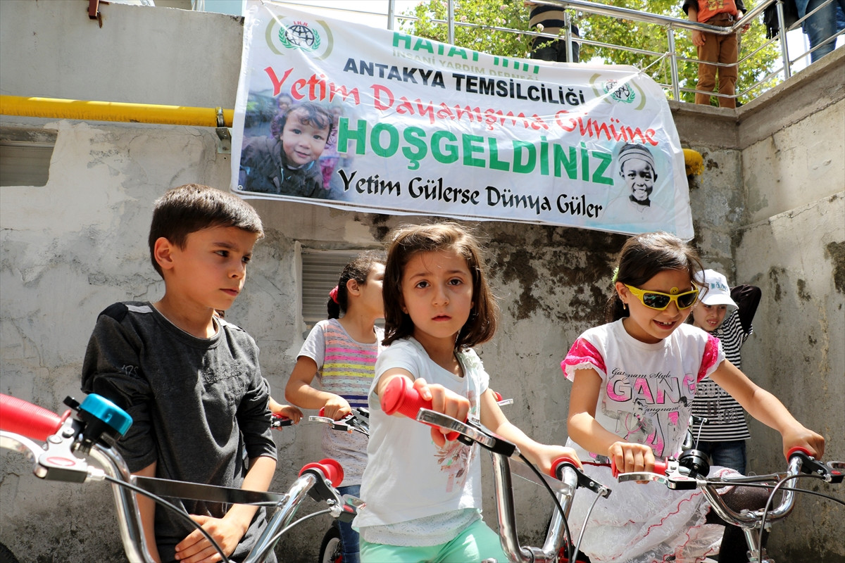 HATAY (AA) - İHH İnsani Yardım Derneği Antakya Temsilciliği ve Halk Sağlığı Müdürlüğünce "Dünya Yetimler Günü" dolayısıyla 25 Suriyeli yetime bisiklet hediye edildi.