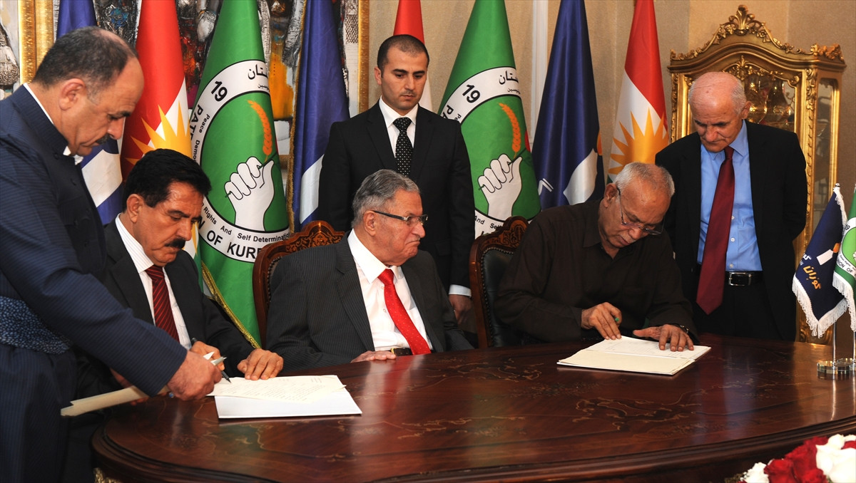 ERBİL (AA) - Eski Irak Cumhurbaşkanı Celal Talabani liderliğindeki Kürdistan Yurtseverler Birliği (KYB) ile Irak Kürt Bölgesel Yönetimi'nde (IKBY) muhalefetin başını çeken Goran (Değişim) Hareketi arasında siyasi anlaşma imzalandı.