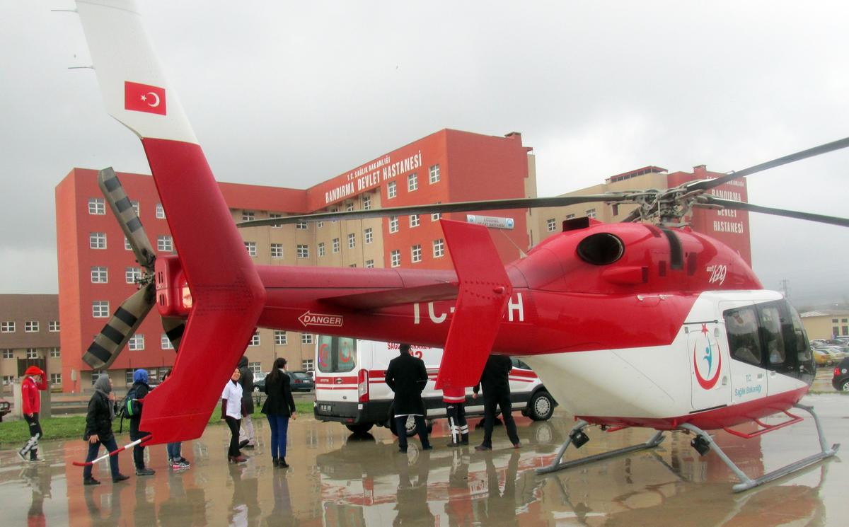 "Erdek'te hastanın alınan kan ve idrar tahlillerini beklerken kalbi durmuş. Acil serviste yapılan müdahale sonrasında tekrar hayata dönen Metin Deniz ambulansla hastanemize getirildi. Hastanemiz acil servisinde tekrar kalbi duran Deniz, yoğun bakım ünitesinde tedavi altına alınarak tekrar hayata döndürüldü. Bölüm doktorları Metin Deniz’in tam teşekkülü bir hastaneye sevk edilmesine karar verdi. Bunun üzerine Sağlık Bakanlığından ambulans helikopter talep ettik. İstanbul’dan havalanan helikopter hastane bahçesine indi. Gerekli hazırlıkların yapılmasının ardından Metin Deniz ambulans helikoptere alınarak İstanbul Dr. Siyami Ersek Göğüs ve Kalp ve Damar Cerrahisi Eğitim ve Araştırma Hastanesine sevk edildi."