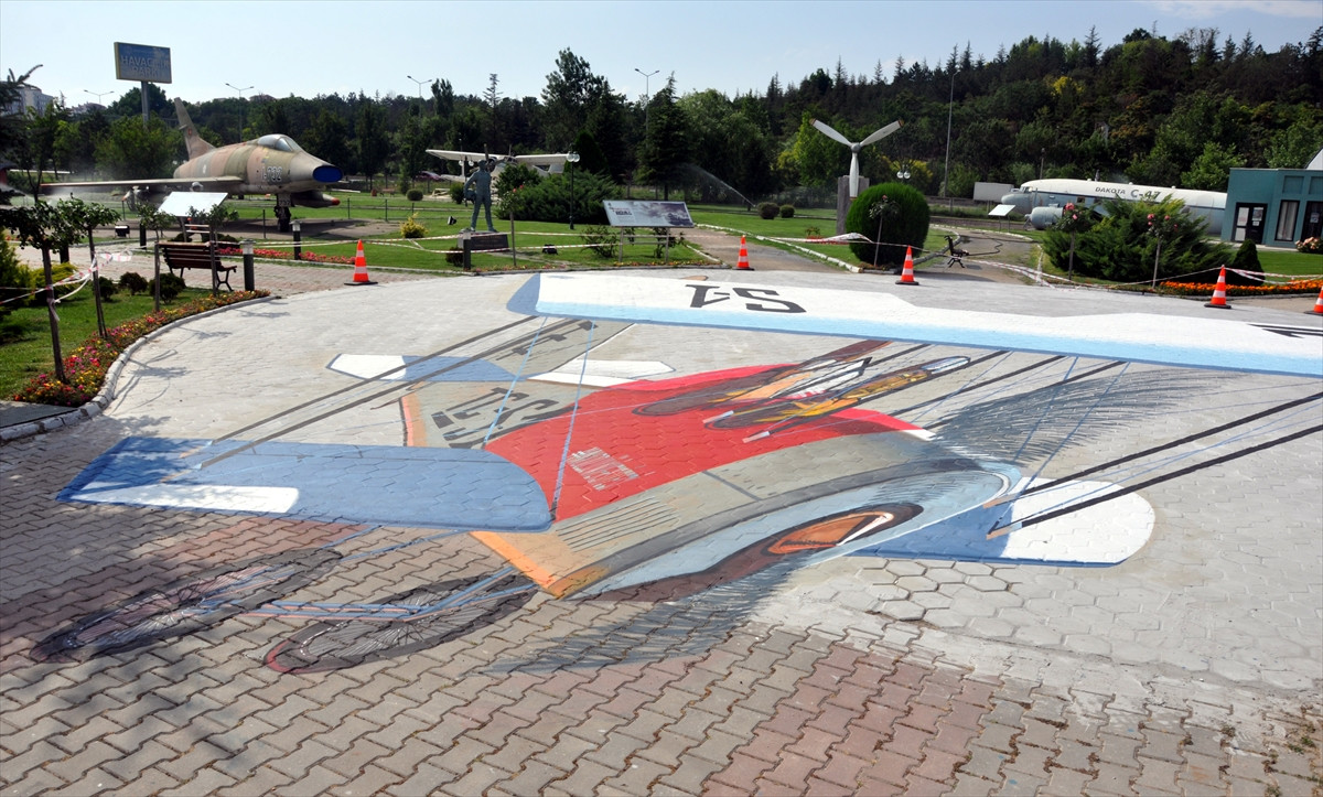 ESKİŞEHİR (AA) - Dünyaca ünlü sokak resmi sanatçısı Alex Maksiov'un Anadolu Üniversitesi (AÜ) Havacılık Parkı'na yaptığı ilk Türk sivil uçağı "VECİHİ XIV'ün 3 boyutlu resminin çizimi sona erdi.