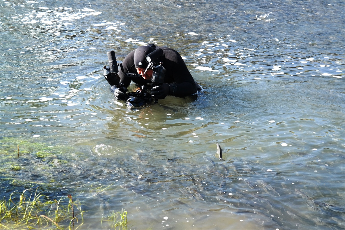 Balık göçünün en yoğun yaşandığı Erciş ilçesindeki Deliçay bölgesinde çalışmalara başlayan Doğa Gözcüleri Derneği Başkanı Prof. Dr. Mustafa Sarı ile Ceylan, inci kefalinin göçünü su altından kaydetmeye başladı.