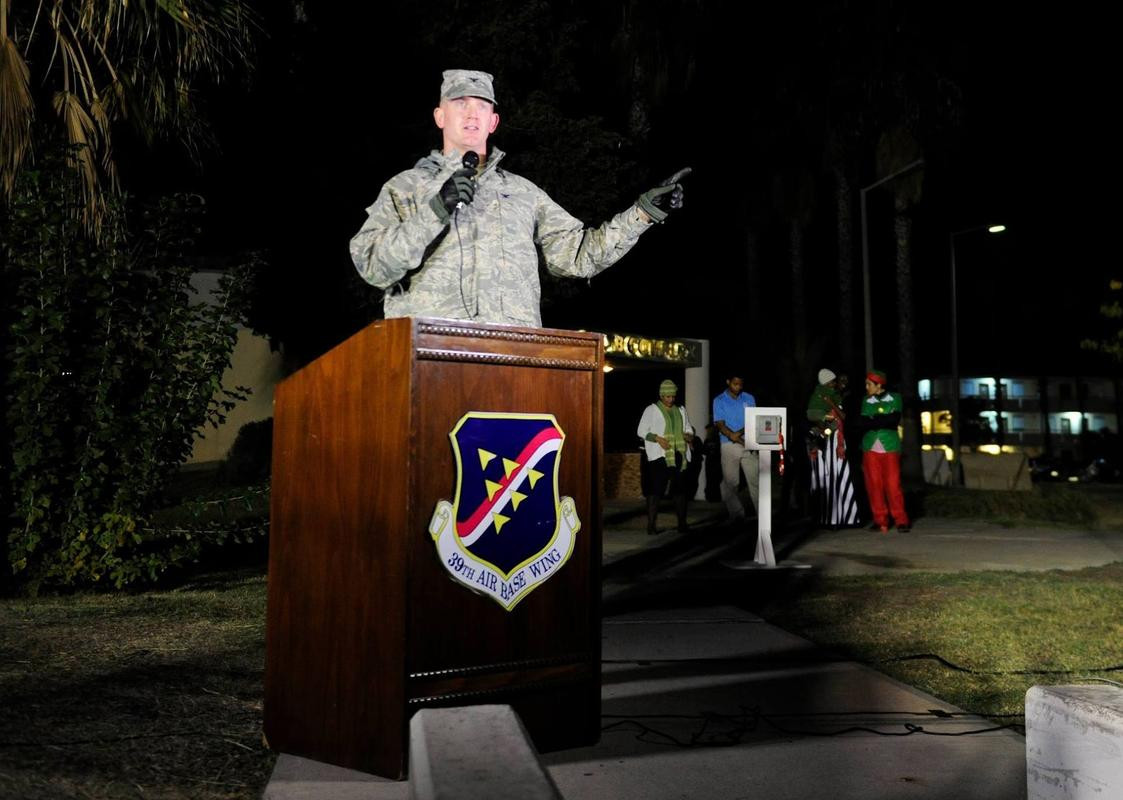 "Noel Baba" kıyafeti giymiş bir kişinin kutlamaya katılanlara hediye verdiği etkinlikte, 39'uncu Hava Kanat Komutanı Albay John Walker da bir konuşma yaptı.