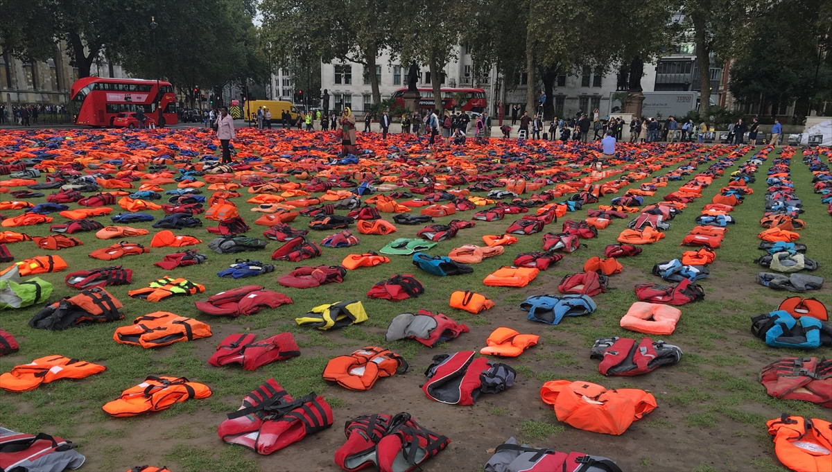 Tarihi İngiliz Parlamentosu'nun önündeki meydana sığınmacıların kullandığı 2 bin 500 can yeleği yerleştirildi. Aralarında BM Mülteciler Yüksek Komiserliği, Uluslararası Kurtarma Komitesi (IRC), Sınır Tanımayan Doktorlar, "World Vision"ın da bulunduğu kuruluşların temsilcileri, parlamentonun önündeki 2 bin 500 can yeleğinden 625'inin çocuk sığınmacılar tarafından kullanıldığına işaret ederek, 2015'in Ocak ayından geçen aya kadar 6 bin 940 kişinin Avrupa'ya ulaşmaya çalışırken boğulduğunu ya da kaybolduğunu vurguladı.