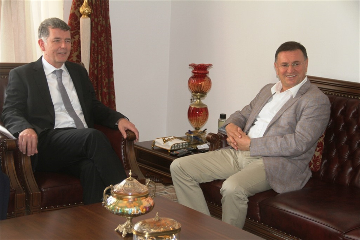 HATAY (AA) - İngiltere'nin Ankara Büyükelçisi Richard Moore, çeşitli temaslarda bulunmak için geldiği Hatay'da Büyükşehir Belediye Başkanı Lütfü Savaş'ı makamında ziyaret etti.