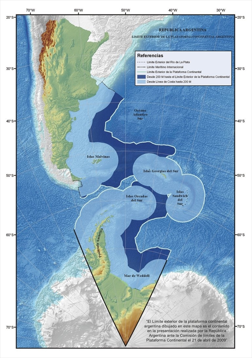 CLCS’nin aldığı kararla Arjantin Dışişleri Bakanlığı tarafından 2009 yılında BM'ye sunulan raporu tasdik ettiği ve ülkenin Güney Atlantik’teki kara sularını genişletmesine izin verdiği belirtildi.