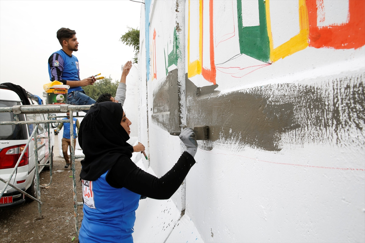 BAĞDAT (AA) - HAYDAR HADİ - Irak'ın başkenti Bağdat'ta bir grup gönüllü genç, 2003 ABD işgalinden sonra güvenlik gerekçesiyle birçok noktaya yerleştirilerek kenti adeta açık hava hapishanesi haline getiren "beton bariyerlere" umut, barış ve yaşama dair mesajlar içeren çizimler yapıyor.