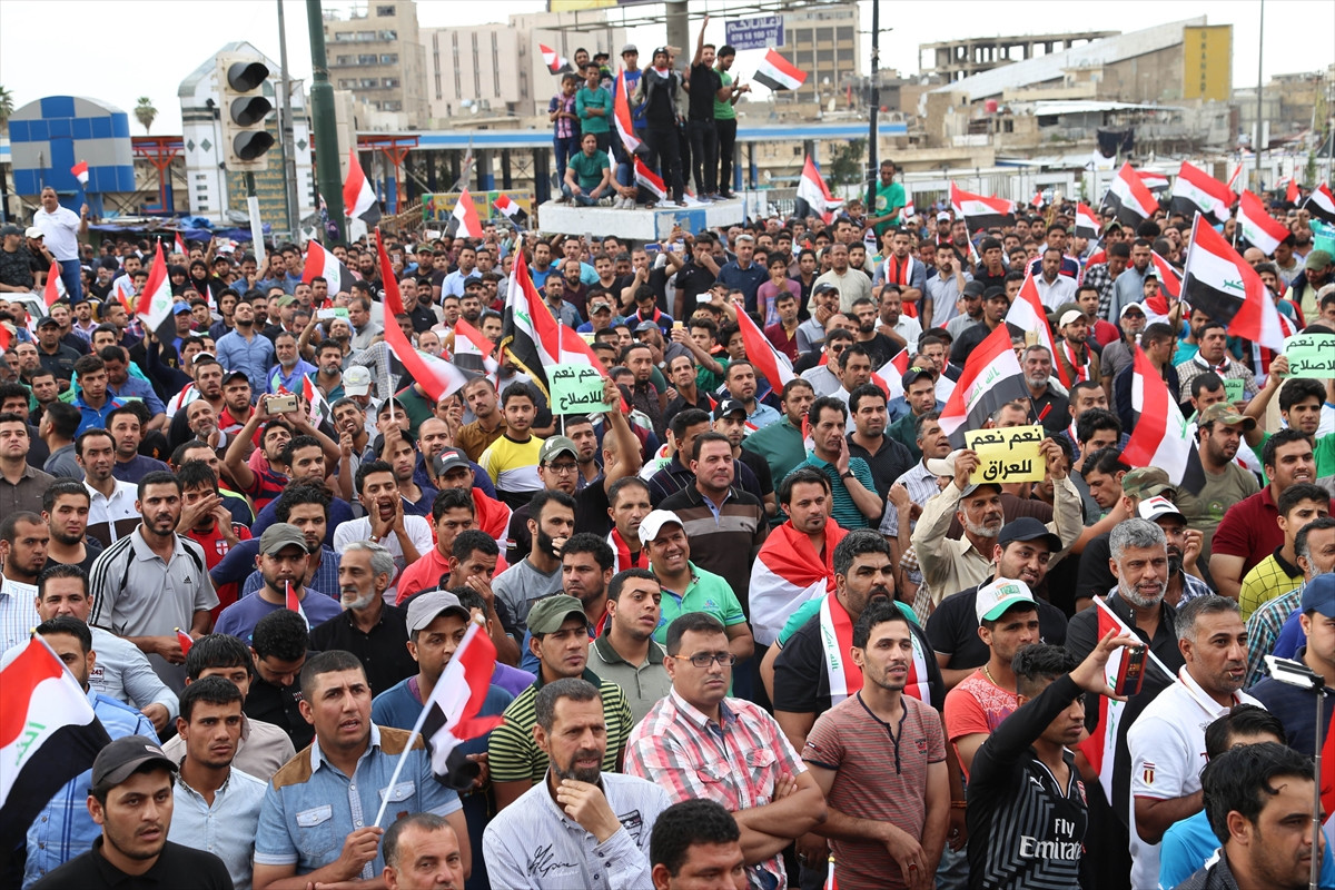 BAĞDAT (AA) - Irak'ın başkenti Bağdat'ın merkezindeki Tahrir Meydanı'nda yüzlerce kişi, teknokratlar hükümeti kurulması ve cumhurbaşkanı, başbakan ve meclis başkanının istifa etmesi için meclis içerisinde oturma eylemi başlatan milletvekillerine destek gösterisi düzenledi.