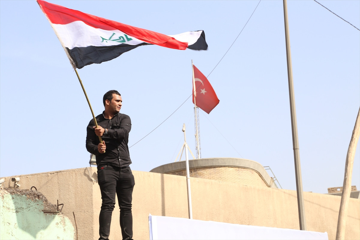 Bağdat'ın Veziriyye semtindeki Türkiye'nin Bağdat Büyükelçiliği binası önünde toplanan Sadr yanlıları Türkiye karşıtı sloganlar attı.