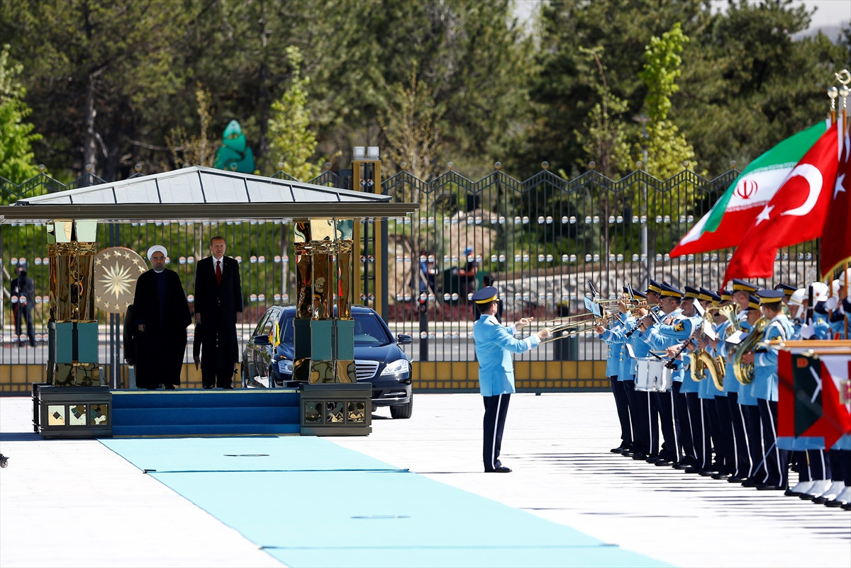 Cumhurbaşkanı Erdoğan, Ruhani'yi Cumhurbaşkanlığı Külliyesi'nin ana giriş kapısında karşıladı. Erdoğan ve Ruhani'nin tören alanındaki yerlerini almasının ardından, 21 pare top atışı eşliğinde iki ülkenin milli marşları çalındı.