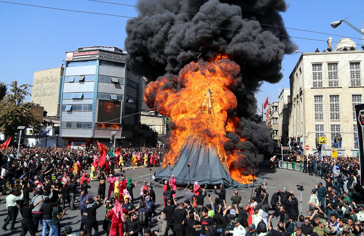 İranlıların "Taziye Gösterisi" adı verdikleri orta oyununda, Hz. Hüseyin'in çadırını temsilen tören alanına kurulan çadır, gösteride Hz. Hüseyin'in düşmanlarını temsil eden oyuncular tarafından ateşe verildi.