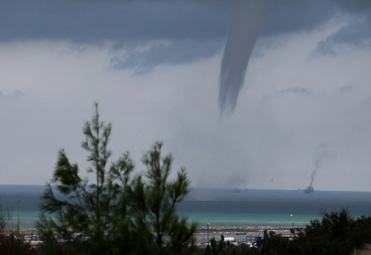 İskenderun Körfezi'nde karaya yaklaşık 300 metre mesafede oluşan hortum, kıyıya doğru 30 saniye süresince ilerlemesinin ardından kayboldu.
