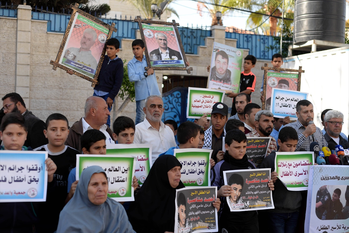 GAZZE (AA) - Gazzeli çocuklar, İsrail mahkemesinin 14 yaşındaki Filistinli Ahmed Manasıra'yı 12 yıl hapis cezasına çarptırmasını protesto için gösteri düzenledi.