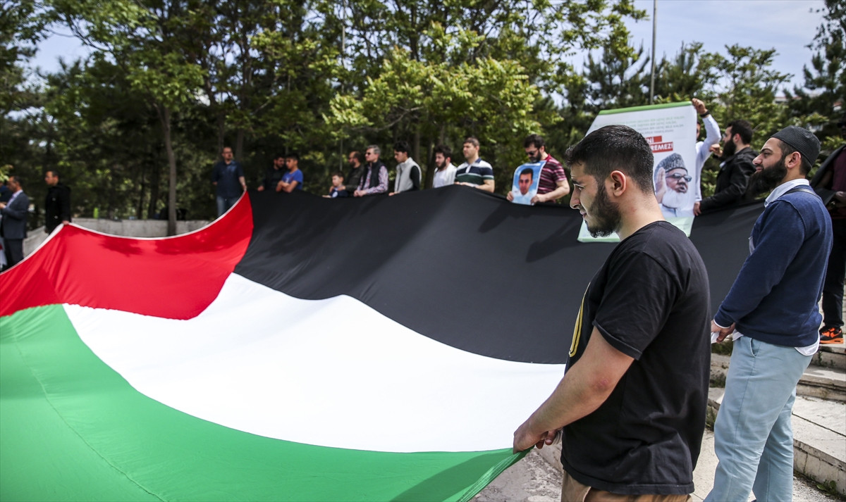 ANKARA (AA) - Gazze ablukasının kaldırılmasını ve Filistin topraklarının işgalinin sonlandırılmasını isteyen Ankara İnanç Özgürlüğü Platformu, İHH ve MAZLUMDER üyeleri, İsrail'in kuruluşunun 68. yılını protesto etti.