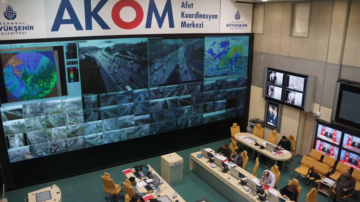İSTANBUL (AA) - İstanbul Büyükşehir Belediyesince (İBB) kışa yönelik tüm hazırlıkların tamamlandığı kent, Afet Koordinasyon Merkezi'nde (AKOM) görevli ekipler tarafından kritik noktalara yerleştirilen kameralarla takip ediliyor.