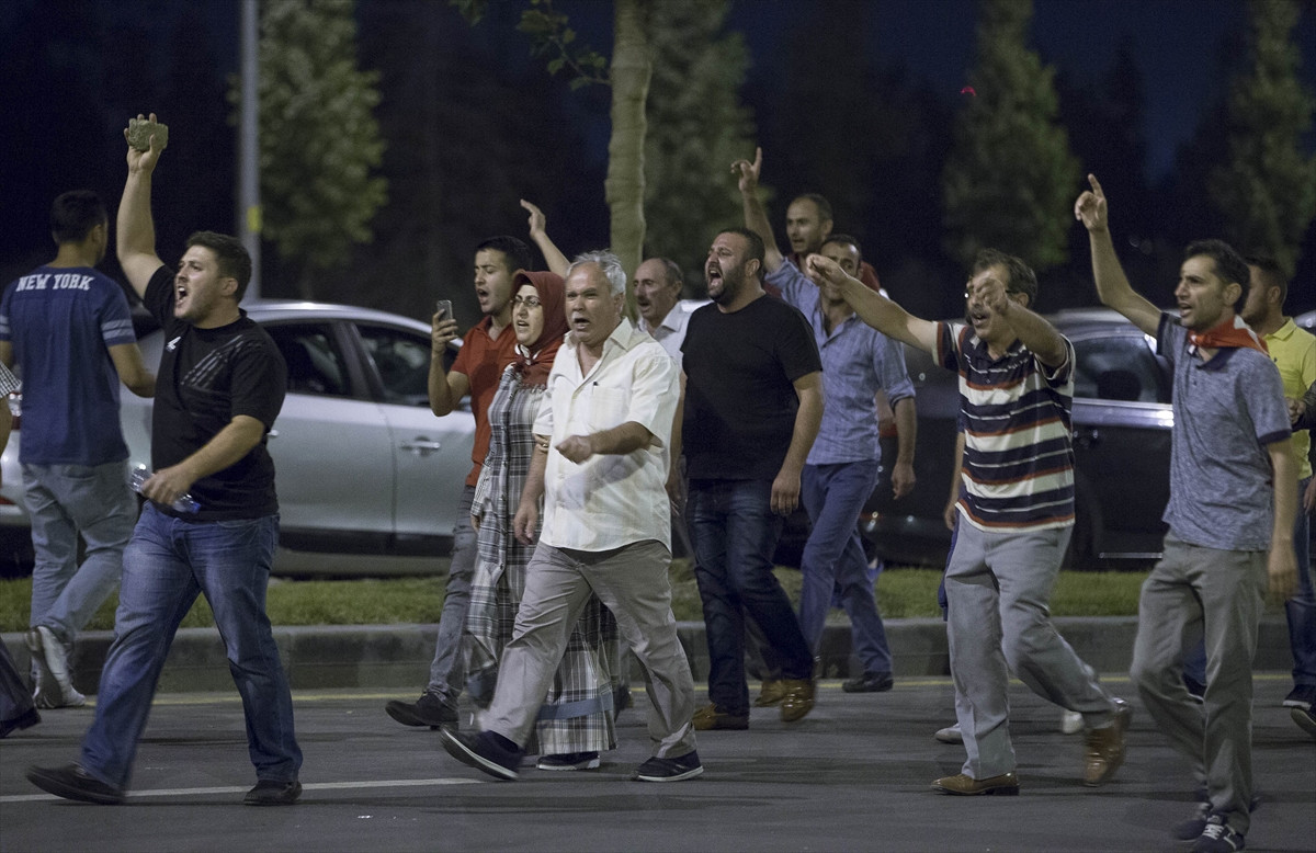 ANKARA (AA) - İstanbul ve Ankara'daki askeri kalkışmaya tepki gösteren vatandaşlar, Cumhurbaşkanlığı Külliyesi'ne giden bütün yolları kapattı.