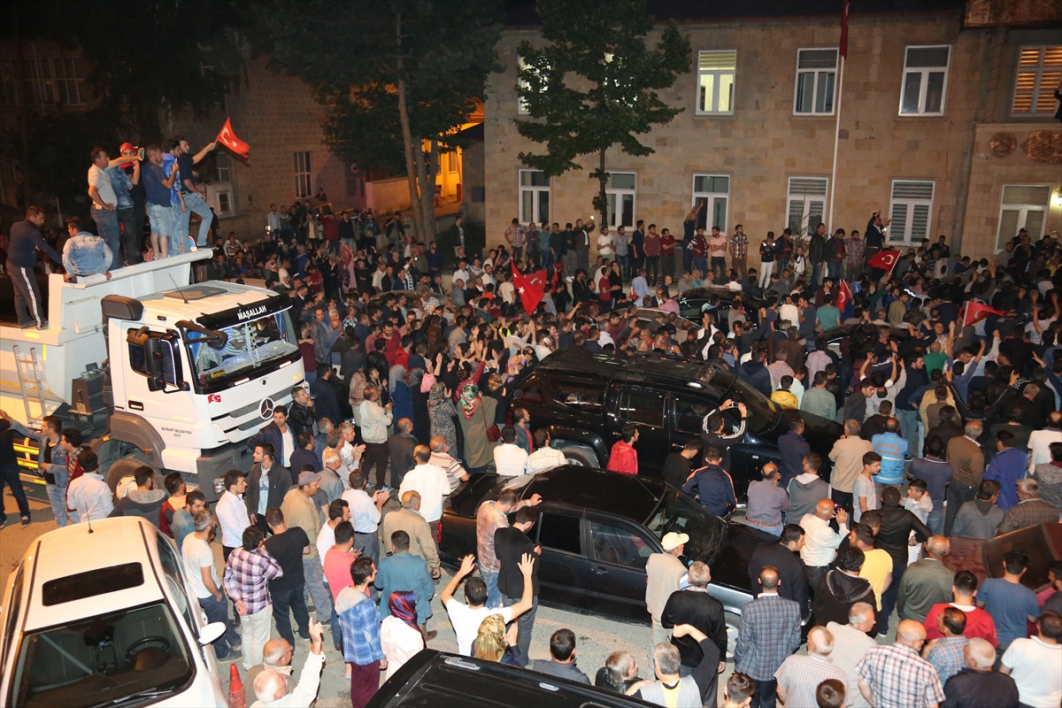 Partinin, Yunus Emre Caddesi'ndeki binasının önüne gelen vatandaşlar burada, "Dik dur eğilme bu millet seninle", "İşte ordu işte komutan" sloganları atıp, alkışlarla olayı protesto etti.
