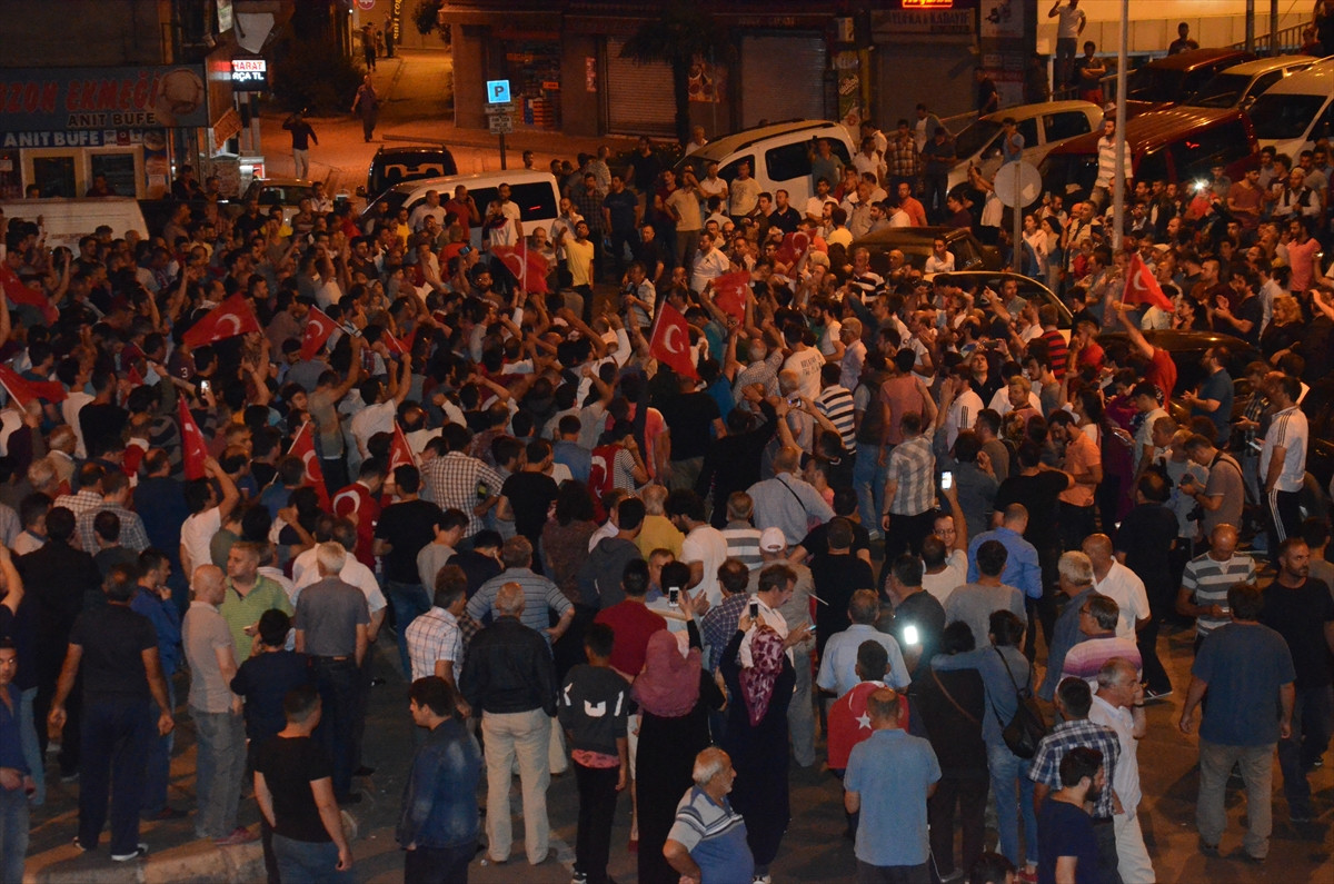 ZONGULDAK (AA) - İstanbul ve Ankara'daki askeri kalkışmaya karşı Zonguldak'ta vatandaşlar sokağa çıktı.