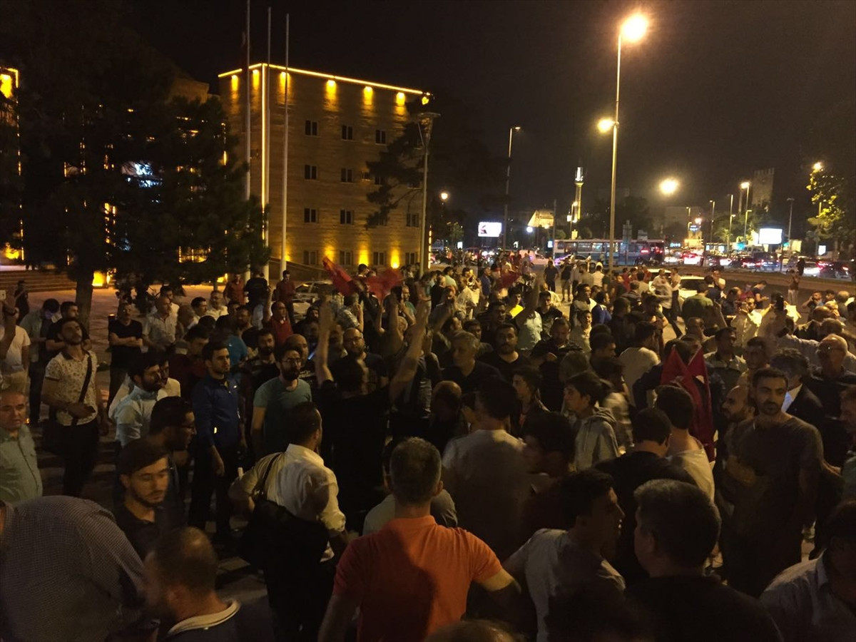 ERZURUM (AA) - Erzurum'da vatandaşlar, Ankara ve İstanbul'daki askeri kalkışmaya karşı toplanmaya başladı.