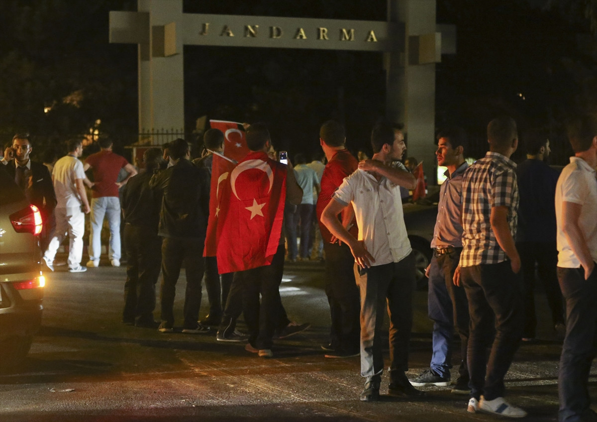 Polisin yoğun güvenlik önlemleri aldığı havalimanının giriş kısmına araçlarıyla gelen yaklaşık yüz elli kişilik bir grup ellerinde Türk bayraklarıyla, “Türkiye uyuma vatanına sahip çık” sloganı atarak askeri kalkışmada bulunanlara tepki gösterdi. Askerlerin havaalanına olası girişine karşı vatandaşlar havaalanının giriş kısmına yüz metre kala yola sivil bir kamyonla bariyer kurdu.