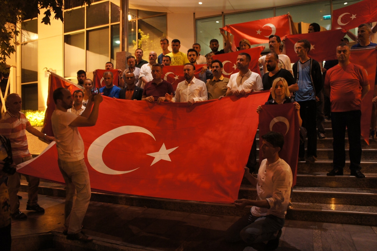 BAKÜ (AA) - Azerbaycan'ın başkenti Bakü'de toplanan Türk vatandaşları, İstanbul ve Ankara'daki darbe girişimini protesto etti.
