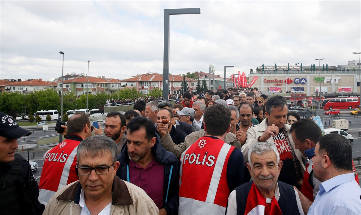 Pankartlar açan, sloganlar atan, şarkılar ve marşlar söyleyen kalabalık, Bakırköy Pazar Meydanı'na ulaştı.