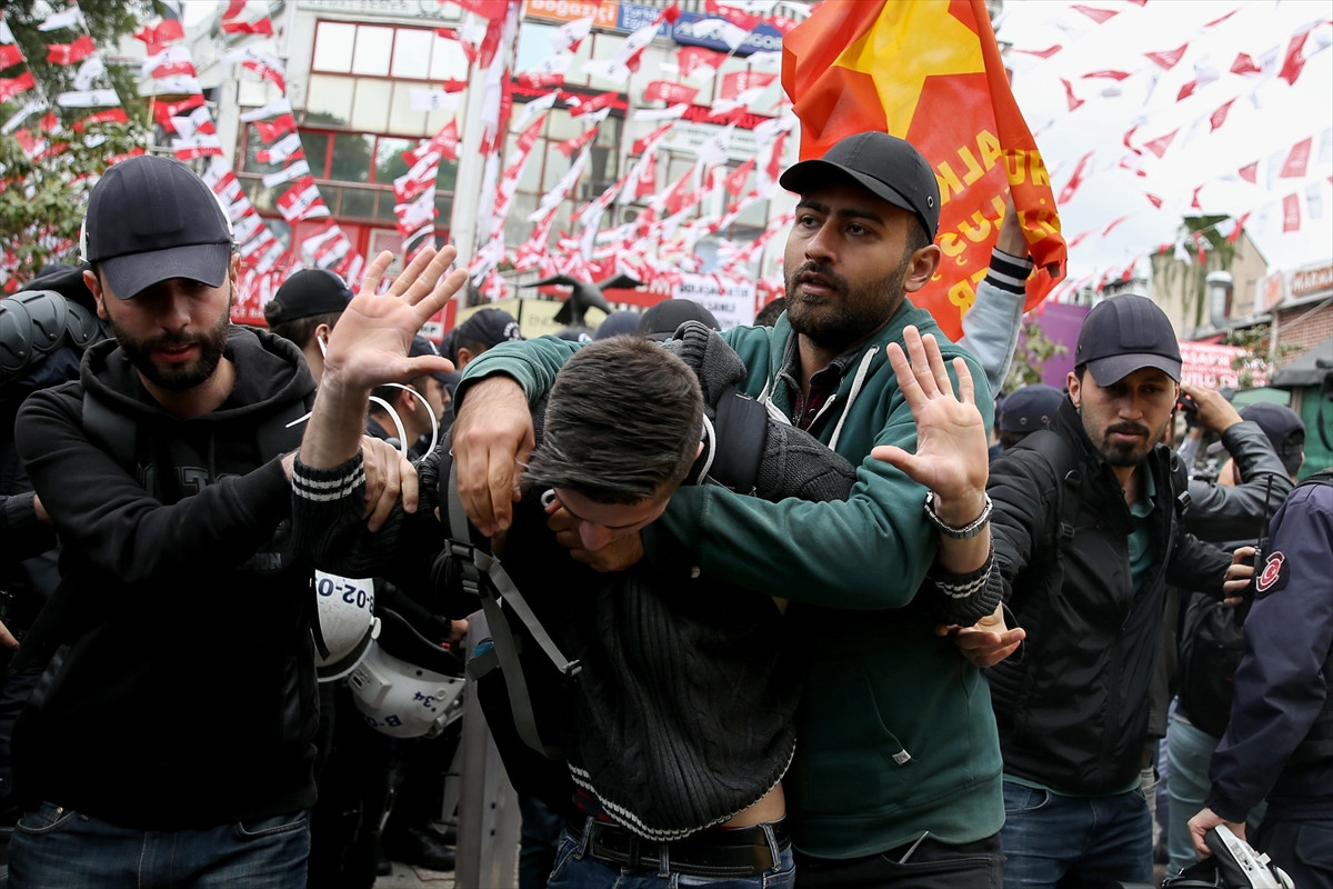Halaskargazi Caddesi'nde toplanan Birleşik Kamu İş Konfederasyonu Genel Başkanı Hasan Kütük ile bazı üyeler, 1 Mayıs Emek ve Dayanışma Günü'nde Taksim Meydanı'nın kapatılmasını eleştiren slogan attı.