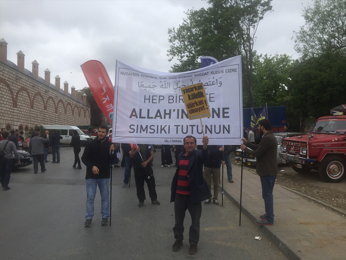 "Ortadoğu'nun her bir tarafında, İslam coğrafyasının her bir tarafında kan, gözyaşı, zulüm, fitne ateşi kol geziyor. Türkiye'de de aynı şekilde Nusaybin'de, Cizre'de, Silopi'de aynı ateş insanlarımızı yakıp kavurmakta. Bizler de bugün "Allah'ın ipine sımsıkı sarılın' ilahi çağrısına uyarak, tüm gruplara, insanlara tüm taraflara Allah'ın ilkelerine sarılmakla ancak kurtuluşa erişilebileceğini haykırmak, iletmek için meydanlardayız. Bütün sorunlarımızın aslında özü itibarıyla aynı olduğunun, toplamda büyük bir resim oluştuğunun farkındayız."