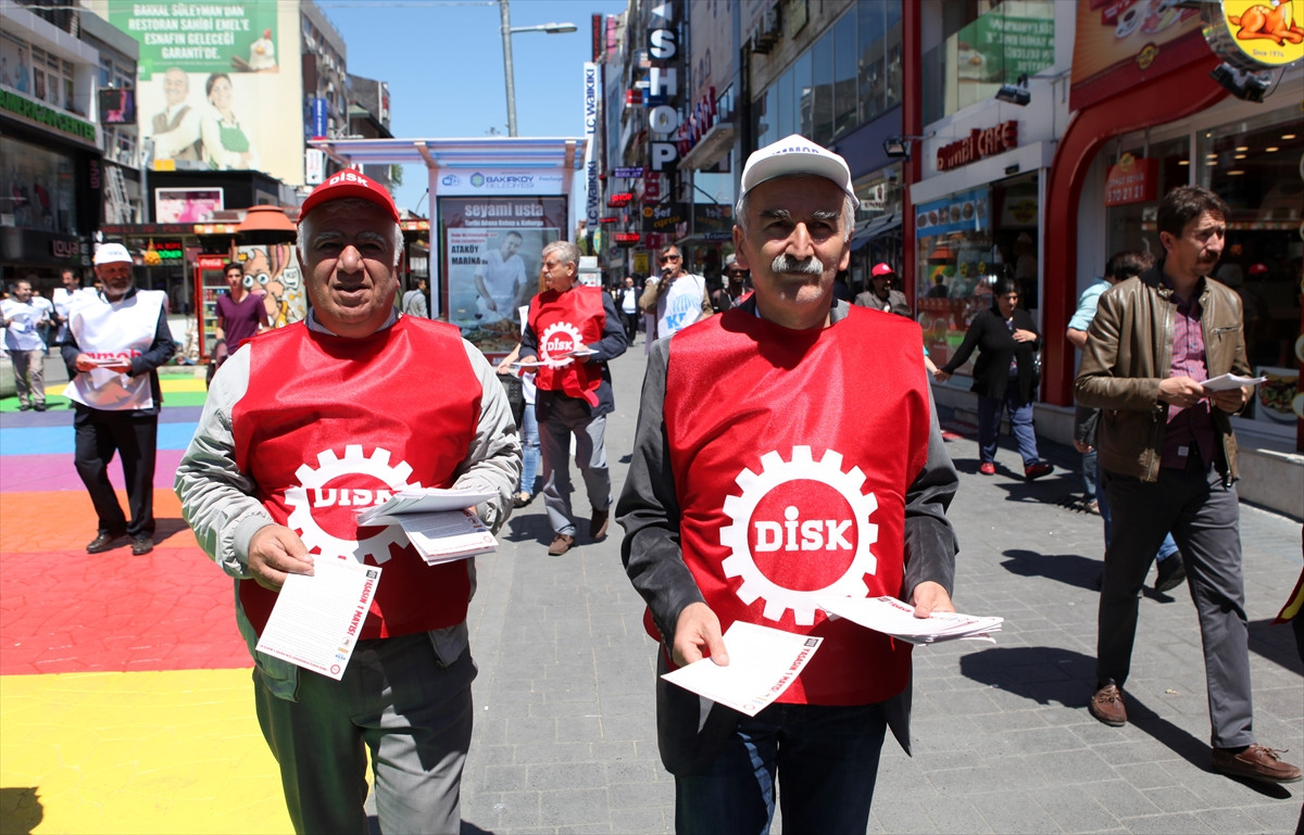 İSTANBUL (AA) - Bakırköy Cumhuriyet Meydanı'nda toplanan Devrimci İşçi Sendikaları Konfederasyonu (DİSK) Genel Başkanı Kani Beko, Kamu Emekçileri Sendikaları (KESK) Başkanı Lami Özgen ile Türk Mühendis ve Mimar Odaları Birliği (TMMOB) Başkanı Mehmet Soğancı'nın da aralarında olduğu grup, vatandaşlara bildiri dağıttı.