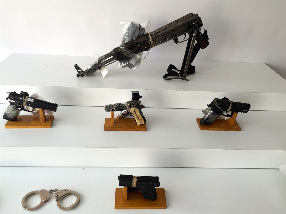 Aramalarda, 1 kaleşnikof, 6 tabanca, 1 pompalı tüfek, 9 şarjör, 147 mermi, 1 kelepçe, 1 el telsizi, 1 sahte kimlik, 1 hassas terazi, 466 gram esrar ve 43 kök kenevir ele geçirildi.
