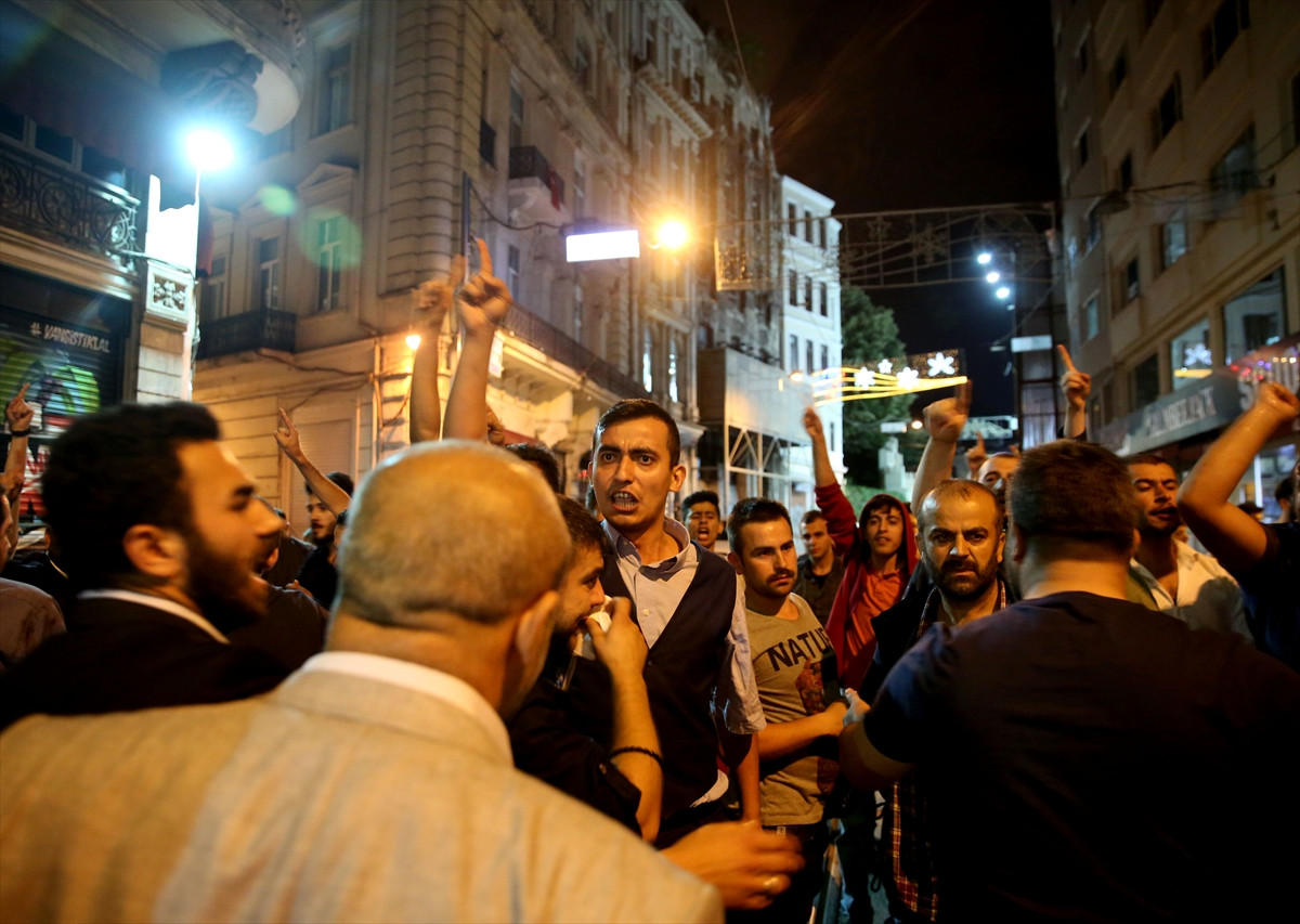 Çevik kuvvet ve sivil polis ekiplerinin konsolosluk çevresi ve İstiklal Caddesi'nde aldığı geniş güvenlik önlemleri altında gerçekleştirilen basın açıklamasının ardından konsolosluğun giriş kapısına ilerlemek isteyen grup ile polis arasında kısa süreli arbede yaşandı.
