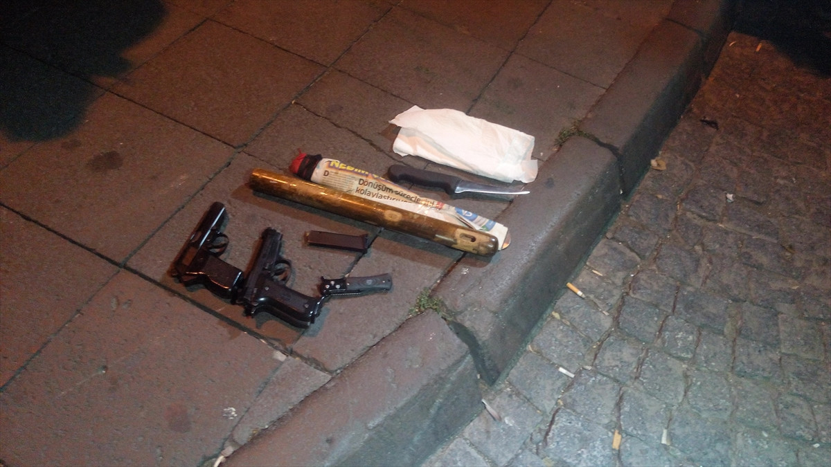 Şişli Kurtuluş Meydanı'nda araçlar ve şahıslar üzerinde yapılan uygulamada bir takside 2 tabanca, sustalı tabir edilen bıçak, kasatura ve sopa ele geçirildi. 4 şüpheliden biri araçtan inerek kaçarken, araçtaki 3 yolcu gözaltına alındı. Diğer yandan bir yabancı uyruklu şahıs pasaportu üzerinde olmadığı için gözaltına alındı.
