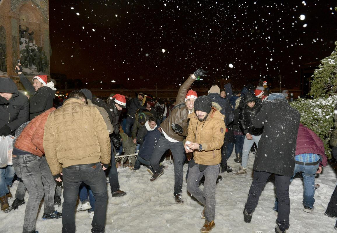 Saatler 24.00'ü gösterdiğine ise Taksim Meydanı'ndaki Cumhuriyet Anıtı çevresinde çevresinde toplanan vatandaşlar, kartopu oynadı.