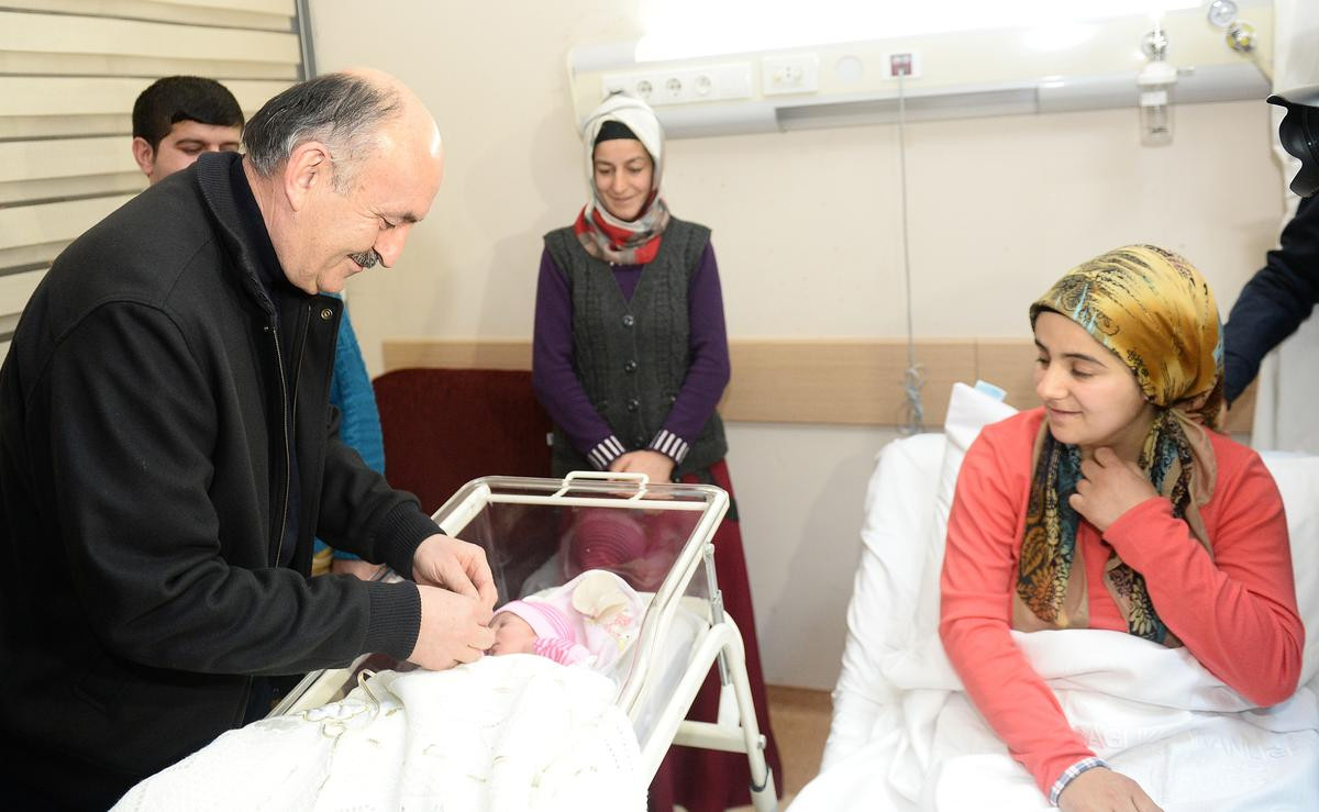 Bakan Müezzinoğlu daha sonra aynı hastanede doğum yapan Kezban Yılmaz ve bebeği Asiye'yi ziyaret ederek çeşitli hediyeler verdi.