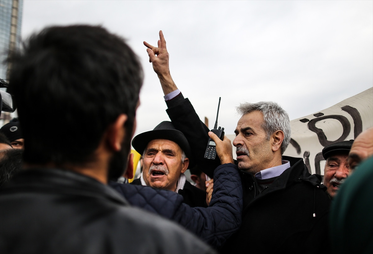 Bu arada bir kişi patlamanın olduğu yere bırakılan bir çelengi eline alarak, "Hem öldürüyorsunuz hem de taziyeye geliyorsunuz" diye tepki gösterdi. Anma programına tepki gösteren kişiyi polisler alandan uzaklaştırdı.