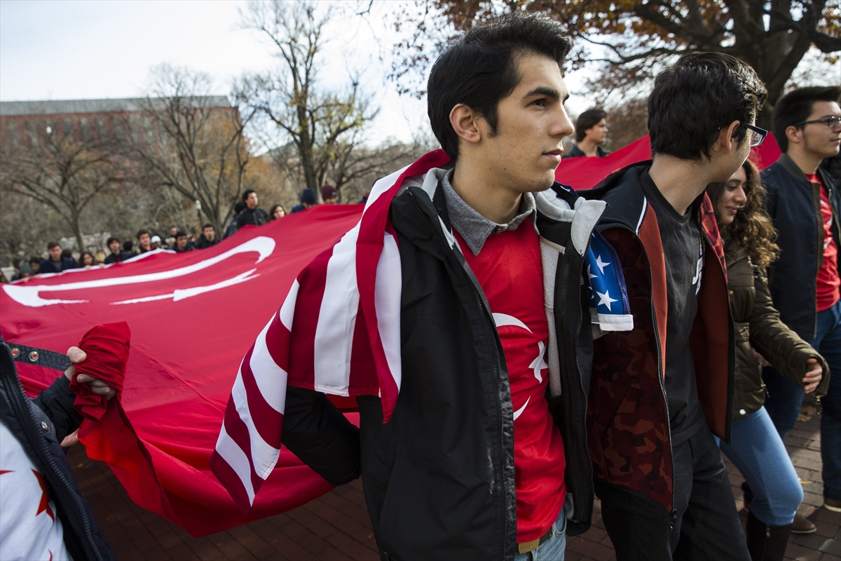 BAU International önünden başlayan ve Beyaz Saray'a kadar devam eden yürüyüşe ellerinde Türk bayraklarıyla çok sayıda öğrenci katıldı.