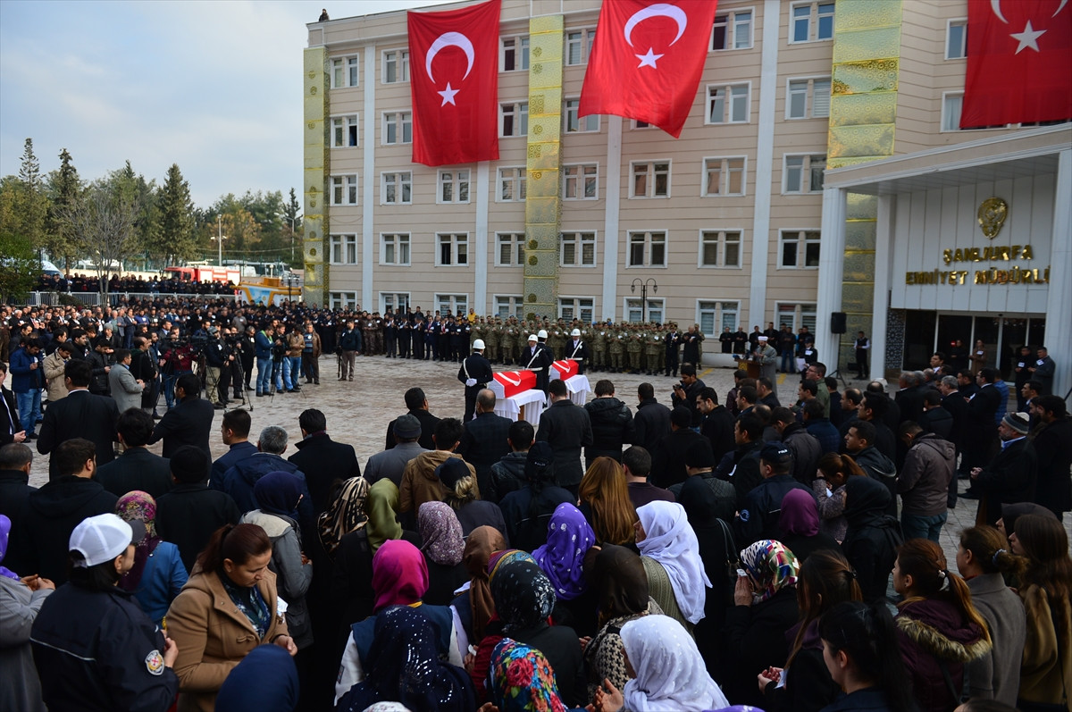 Cenazelerin, tören için Şanlıurfa Emniyet Müdürlüğüne indirilişi sırasında şehitlerin yakınları, naaşlara sarılarak Türkçe ve Kürtçe ağıt yaktı.