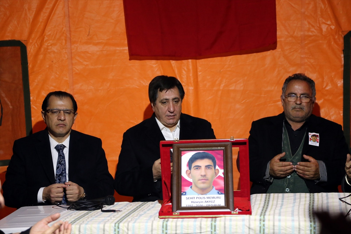 Taziye çadırında Kuran-ı Kerim tilaveti sonrasında eller şehitlerimiz için semaya açıldı.