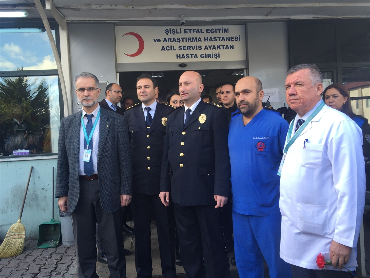 İSTANBUL (AA) - İstanbul Emniyet Müdür Yardımcısı Mesut Gezer ile beraberindeki heyet, İstanbul'daki terör saldırısında yaralananları tedavi gördükleri Şişli Hamidiye Etfal Eğitim ve Araştırma Hastanesi'nde ziyaret etti.