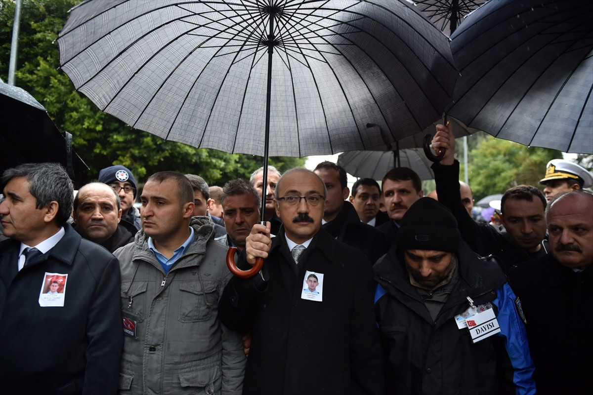 Bakan Elvan'ın eşi Zeliha Elvan, Vali Çakacak'ın eşi Kevser Çakacak ile kadın polisler, tören boyunca acılı anne ile ablanın elini tutarak, teskin etti.