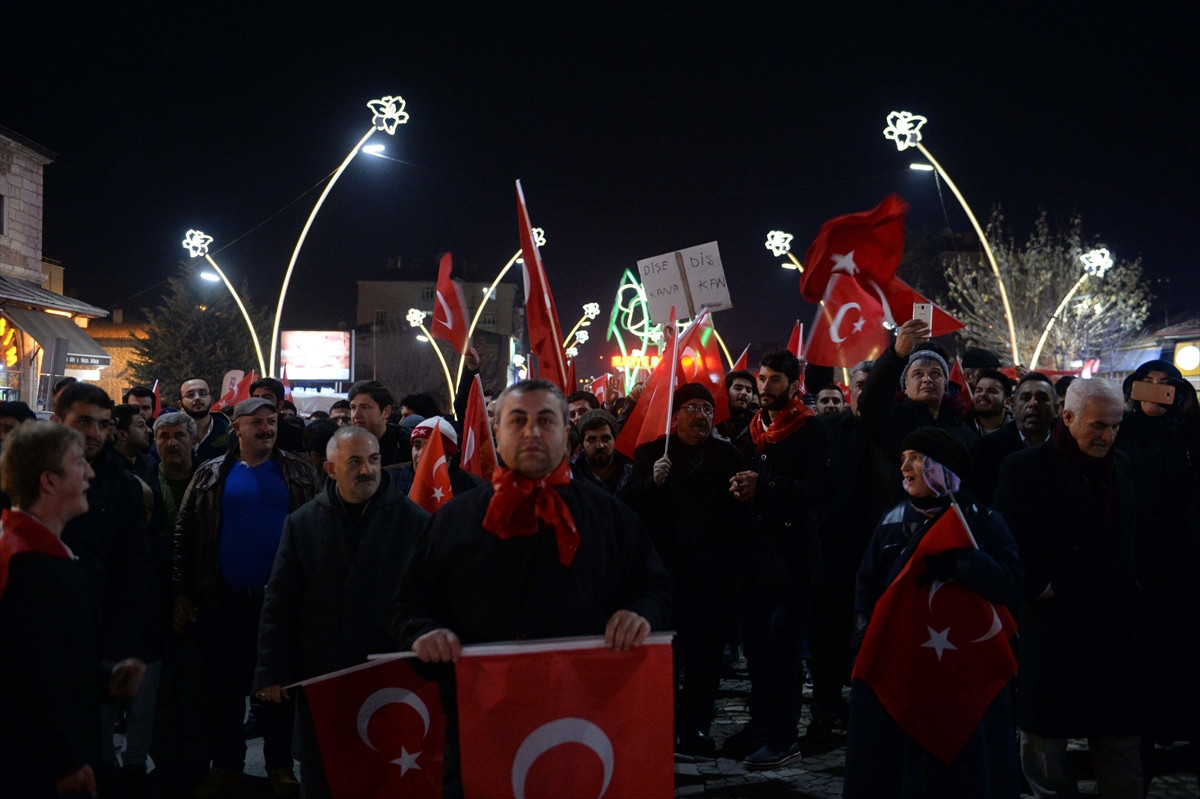 Ellerinde Türk bayrakları ve dövizlerle Gaziosmanpaşa Bulvarı'ndaki Ali Paşa Camisi'ne yürüyen vatandaşlar, "polise uzanan eller kırılsın" ve "şehitler ölmez vatan bölmez" sloganları attı.