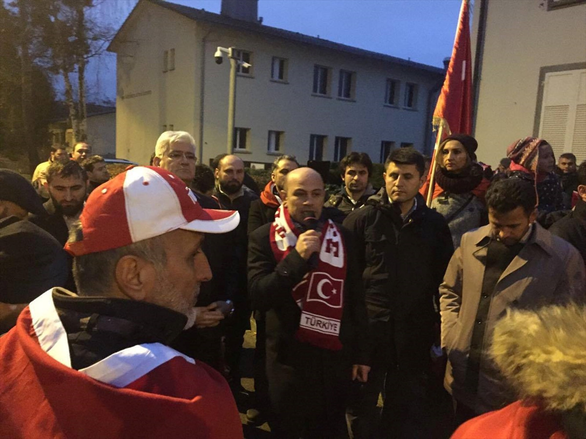 Türk iş adamı Suat Şahin'in girişimiyle organize edilen miting için Türk vatandaşları Türkiye'nin Zürih Başkonsolosluğu önünde toplandı.