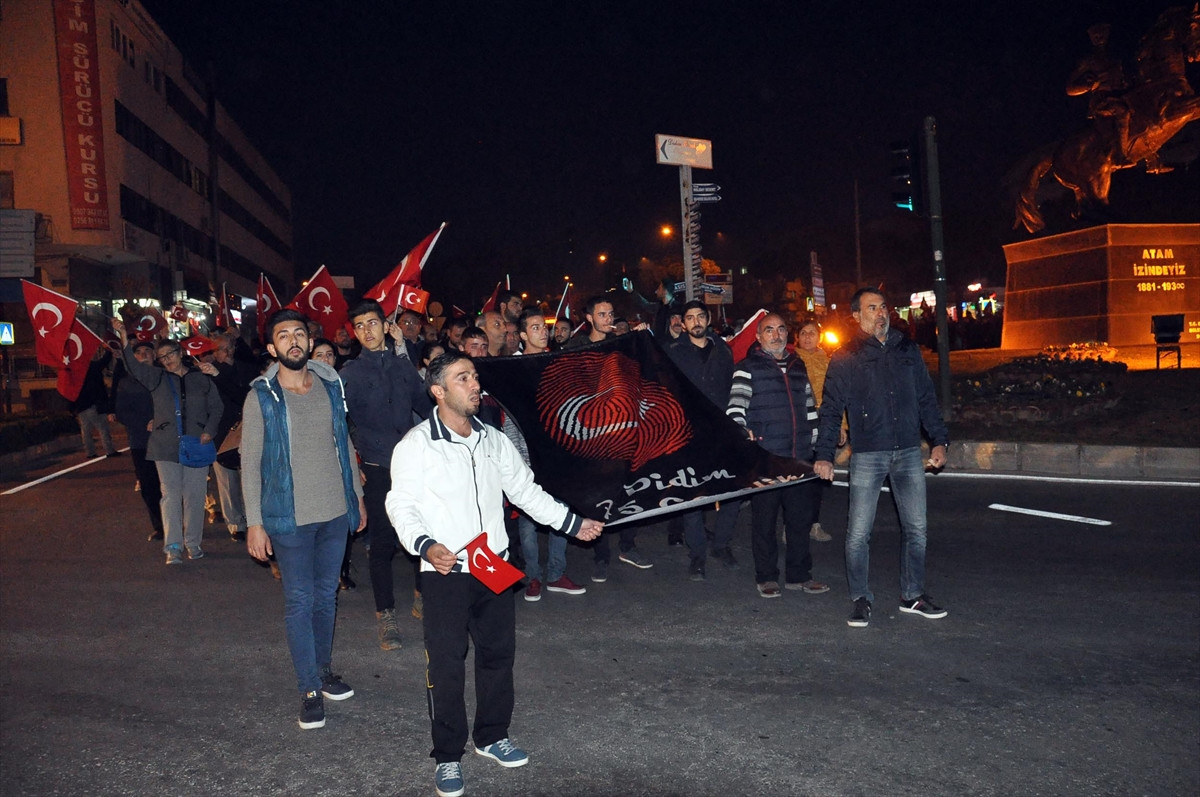Didim 75 Gençlik Derneği öncülüğünde Merkez Cami önünde başlatılan yürüyüşte "Her şey vatan için", "Kahrolsun PKK", "Ne mutlu Türküm diyene" ve "Polise uzanan eller kırılsın" sloganları atıldı.