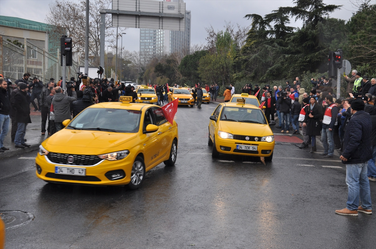 Saldırının gerçekleştiği yere, korna çalarak gelen yaklaşık 50 taksici, saldırıya tepki gösterdi.