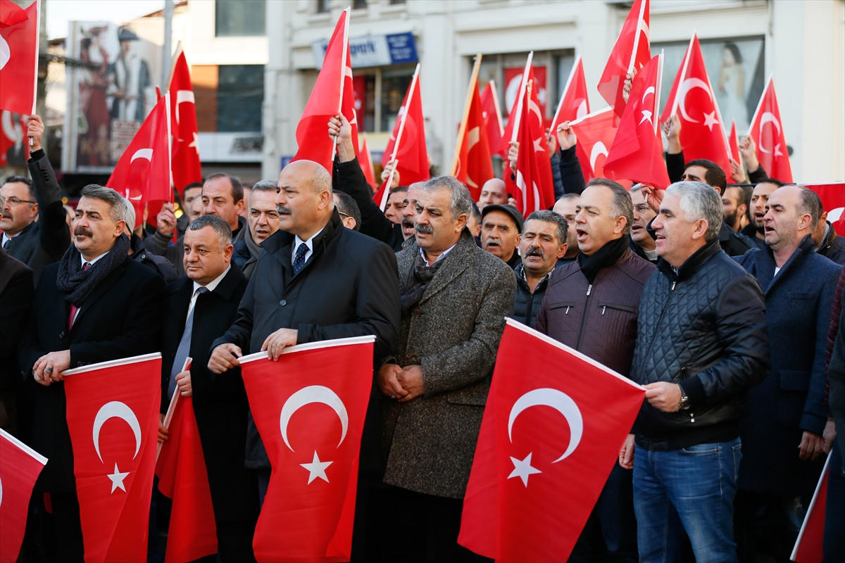 Protestoya katılan esnaf Turgay Oğuzhan, "Saldırıda şehit olanların kanının yerde kalmayacağını ispat etmek için bütün Türkiye burada. Avrupa teröre destek vermektedir. İkiyüzlü, çıkarcı bir politika izliyorlar. Ama bu millet, bu oyunu bozacaktır." diye konuştu.
