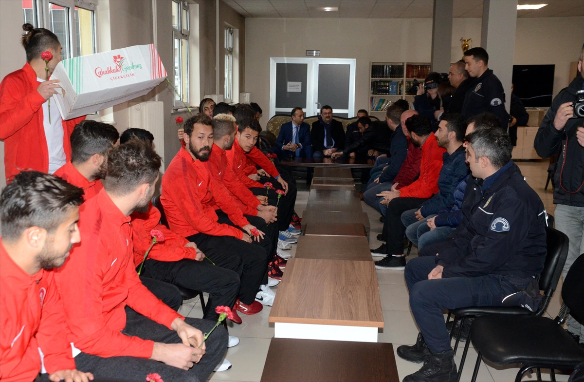 Futbolcular ve teknik heyet, burada görevli polis memurlarına karanfil verdi.