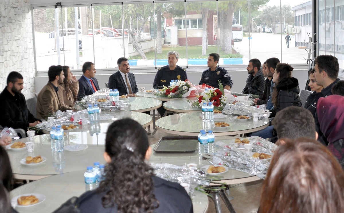 Bornova ilçesinde bulunan İl Emniyet Müdürlüğü Çevik Kuvvet Şube Müdürlüğüne gelen öğrenciler burada Çevik Kuvvet Şube Müdürü Murat Yeşilyurt ve görevli polisler tarafından karşılandı. Yanlarından getirdikleri karanfilleri Çevik Kuvvet'teki polislere dağıtan öğrenciler, şehitler için dua etti.