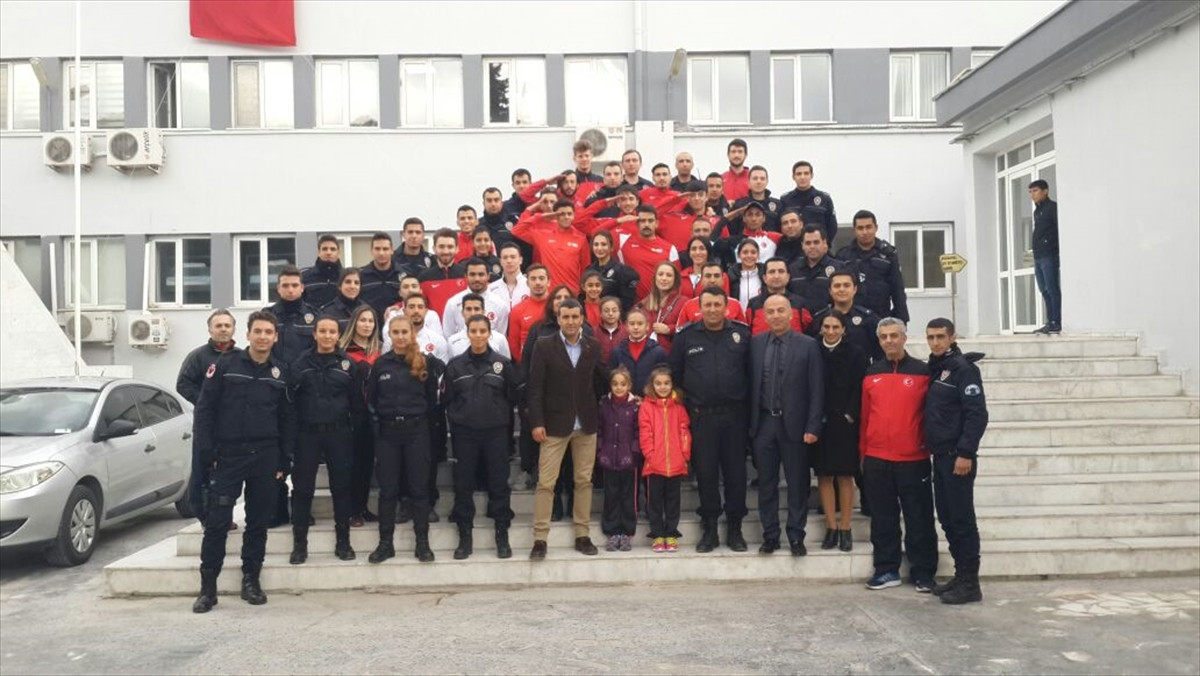 İZMİR (AA) - İzmir'de milli sporcular, İstanbul'daki terör saldırıları nedeniyle Çevik Kuvvet Şube Müdürlüğünü ziyaret etti.