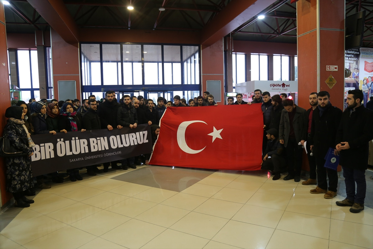 AK Parti Sakarya İl Gençlik Kollarının Sakarya Üniversitesi (SAÜ) teşkilatı üyeleri, ellerinde "Bir ölürüz, bin diriliz" yazılı pankart ve Türk bayraklarıyla merkez kafeteryada toplanarak, "Şehitler ölmez, vatan bölünmez", "Kanımız aksa da zafer İslam'ın" şeklinde slogan attı.